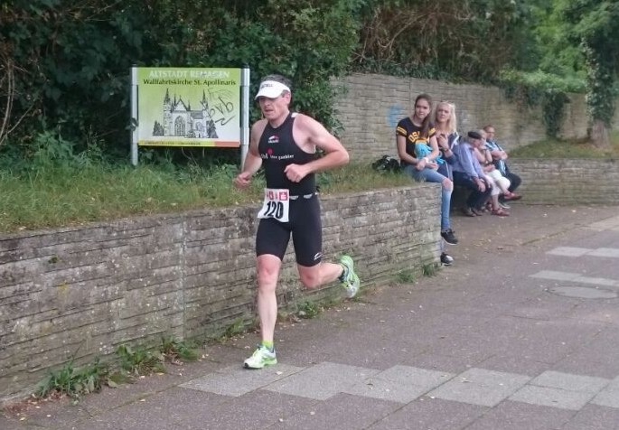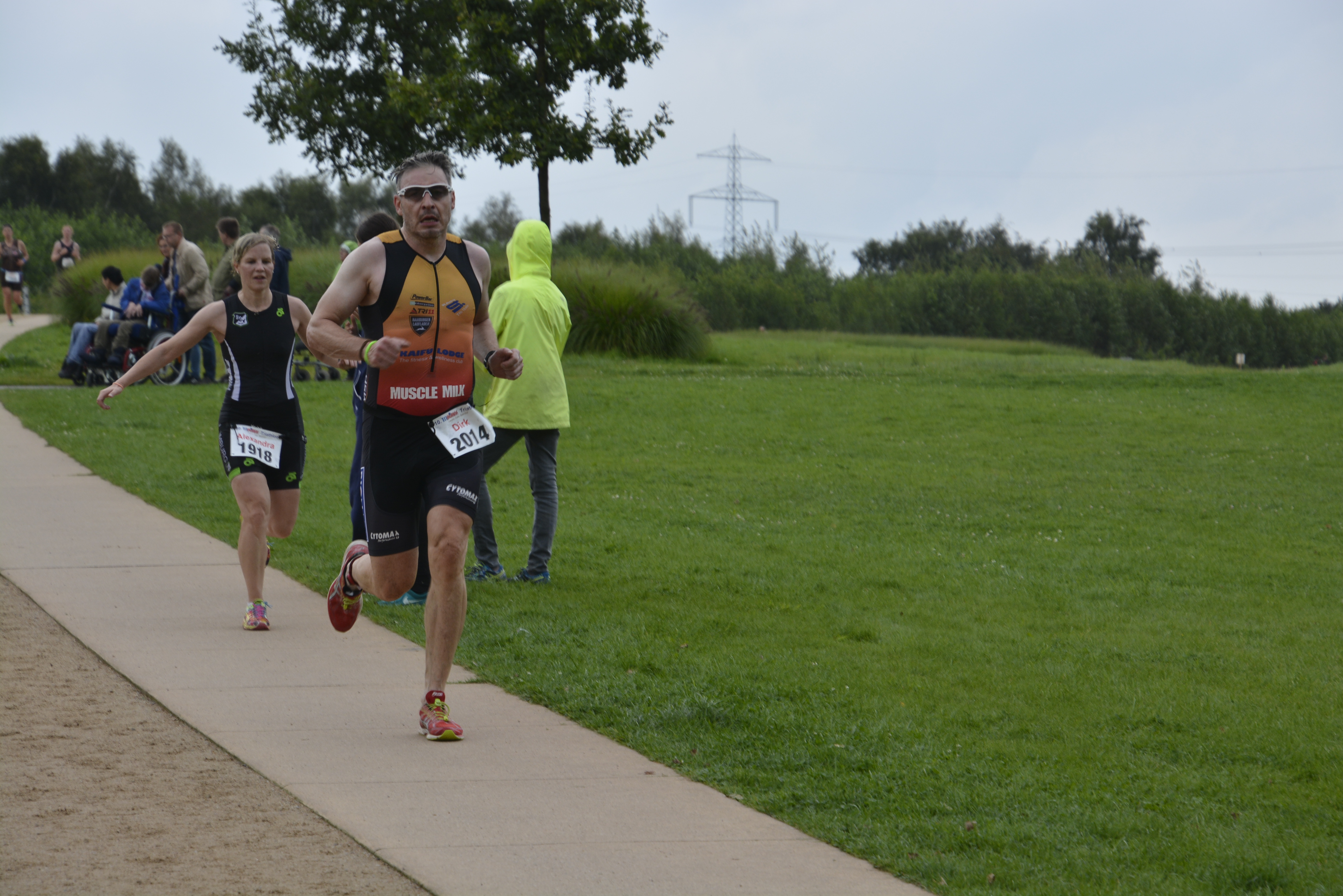 Dieser Bericht kann gut als Kopie des Berichtes aus dem Vorjahr durchgehen. Die Grundvorraussetzungen waren fast identisch. Es stand der letzte Termin der RTV Masters Liga 2016 auf dem Programm. Vor dieser Veranstaltung stand ich auf dem zweiten Platz der Masters Einzelwertung, mit der Mannschaft waren wir Punktgleich mit LTF Marpingen. Mein Ziel war es den ersten Platz in der Abschlusstabelle noch zu sichern, schwierig aber nicht unmöglich. Nach gutem Schwimmen konnte ich sehr schnell zur Rad-Spitzengruppe der Masters aufschliessen, ich hatte perfekte Beine und so beschloss ich die Sache noch mutiger als im Vorjahr anzugehen. Ich setze mich von meinen Mitstreitern ab und konnte bis in die Wechselzone knapp 2 Minuten Vorsprung herausfahren. Das Laufen über die 10,5 km lief nicht ganz so rund wie erwünscht. 10 Wochen mit vermindertem Lauftraining waren doch deutlich zu spüren. Während des Laufes war ich durch Heiko Spitzhorn ständig über den Vorsprung zu meinen Verfolgern informiert. Der Vorsprung schmolz leider stetig. Im zweiten Teil der letzten Laufrunde habe ich dann nochmal alles auf eine Karte gesetzt, so konnte ich meinen Vorsprung doch noch halten und dadurch den Sieg in der Masterswertung erzielen.