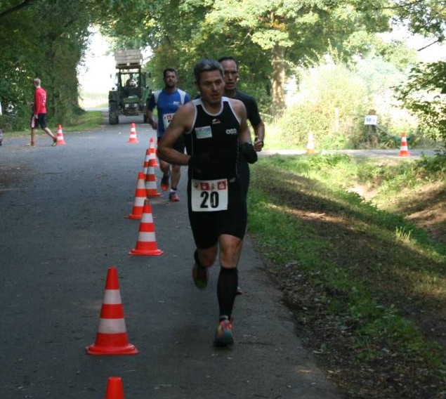 Nach der Absage des Triathlons in Remagen habe ich auch noch den Cross Duathlon in Ahrweiler ins Programm aufgenommen. Über die längste Distanz der Veranstaltung im Rahmen der X-Trails Regio Tour Eifel wurde zusätzlich die Rheinland-Pfalz Meister im Cross Duathlon ermittelt. Es waren die Distanzen, 5 km Laufen, 18 km MTB fahren und 2,7 km Laufen zu absolvieren. In meiner Altersklasse waren insgesamt fünf Sportler gemeldet, um die Rheinland-Pfalz Meisterschaft in der AK Sen3 habe nur ich mich angemeldet. Kai Hess vom Tus Ahrweiler, konnte beim ersten Lauf seinen Rückstand auf mich im Rahmen halten und trumpfte dann bei seiner Paradedisziplin dem MTB fahren richtig auf. Diesen Vorsprung verwaltete er dann beim zweiten Lauf und wurde damit erster unserer Altersklasse. Ich lief auf Platz 2 der Altersklasse ins Ziel und wurde Rheinland-Pfalz Meister.