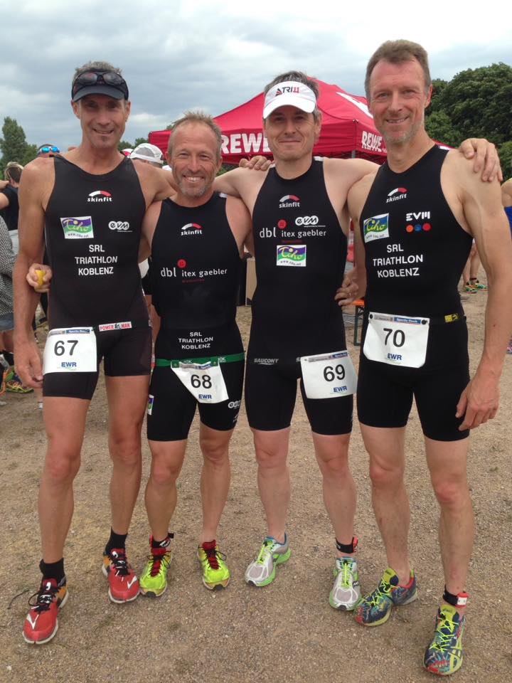 In Worms wurde die zweite Veranstaltung in der RTV Liga Rheinland-Pfalz / Saarland 2017 als Sprinttriathlon durchgeführt. Dort war ich wie immer in der Mastersliga eingesetzt. M.Schrömges, F.Krause und H.Spitzhorn waren mit mir am Start. Nach meiner desaströsen Vorstellung in Maxdorf galt es ein gutes Ergebnis abzuliefern, ansonsten wäre der Startplatz in der SRL Masters Mannschaft gefährdet. Nach für meinen Verhältnissen guten Schwimmen und der Tagesbestzeit beim Radfahren der Masters konnte ich mit M.Rothfuchs (LTF Marpingen) auf Platz eins liegend in die Wechselzone 2 einfahren. Auf der Laufstrecke mußte ich den besseren Läufer M.Rothfuchs ziehen lassen, sein Vorsprung Betrug am Ende aber nur 20 sec. Mit dieser sehr ordentlichen Leistung konnte ich mir den 2.Platz in der Masterswertung sichern, 1.Platz AK50 Gesamt. Ich habe meinen Raddruck wieder gefunden, sehr erfreulich !