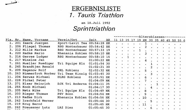 Am Ende des Tages kamen folgende Ergebnisse zustande. Dirk kam als 18. Gesamt / 2.Platz AK45 in 1:02:27 Std. ins Ziel, ich kam als 19. Gesamt / 3.Platz AK50 in 1:02:35 Std. ins Ziel. Zusätzlich wurden die Rheinland-Pfalz Meisterschaften über Sprint Distanz ausgetragen. Hier konnte ich Rheinland-Pfalz Meister in AK50 werden. (mr)