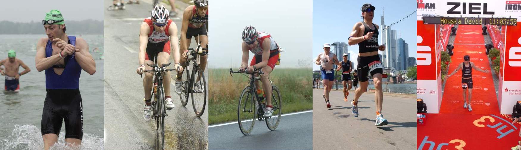 Um 6.55 Uhr fiel der Startschuss, ohne größere Probleme schwimmen wir relativ locker die 3,8 km in 1:02 h. Im Wechselzelt 1 sitzen wir sogar neben einander und machen uns zum Rad fahren parat. Dirk hat mich kurz nach der Wechselzone überholt und zieht davon. Das war auch so geplant, Dirk versucht unter 5 h zufahren und ich zwischen 5:05 und 5:10. Auf den ersten 60 km beim Radfahren versuche ich mich wirklich zurück zuhalten, das gelingt mir auch sehr gut. Als Vereinskamerad Heiko Spitzhorn zu mir vorfährt fahre ich dann ein paar Kilometer mit. Als ich aber merke dass es doch ein klein bisschen zu schnell ist lasse ich ihn fahren (Denn er hat höhere Ziele an diesem Tag als ich). Bei Kilometer 120 fingen pünktlich meine Rückenprobleme an, diesmal waren sie aber nicht ganz so schlimm wie 2003. Dafür machte aber mein Magen Probleme. Irgendwie komme ich mit dem High5 Getränk des Veranstalters nicht so recht. Dafür arbeitet der Kopf um so besser, nämlich so das er jetzt analysiert ob das hier alles einen Sinn macht. Man könnte ja z.B. auch an der Biermeile sitzen und ohne Körperliche Schmerzen die anderen Sportler anfeuern. Schlussendlich bin ich die 180 km in 5:09 h gefahren, nicht doll aber bis dahin ist unter 10 h noch drin. Dirk hatte auf der Radstrecke die gleichen Probleme und beendet die 180 km in 4:59 h, auch im Soll.