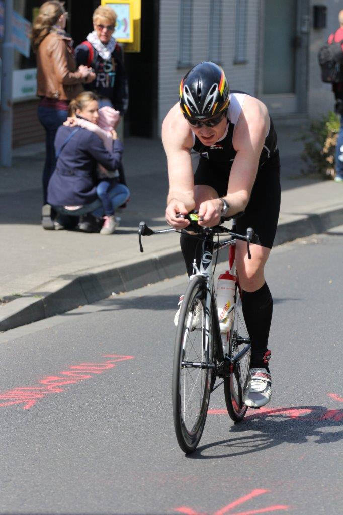 Bei früh sommerlichen Temperaturen und sehr starkem Wind ging es am Sonntag um 12.45 Uhr ins Rennen. Bei der Auftakt Diziplin waren 10 km zu laufen, ich wollte eigentlich etwas langsamer anlaufen, aber schnell bemerkte ich meine direkten Konkurrenten in der Altersklasse und ging dann ihr etwas schnellere Tempo mit. Beim Radfahren waren die äußeren Bedingungen besonders stark zu spüren. Das bringt für etwas schwerere Fahre wie mich aber Vorteile, wo andere an den Oberlenker müssen, kann ich die Zeitfahrposition halten und durch drücken.