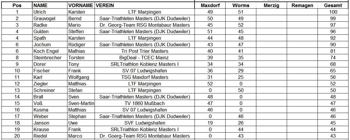Unterm Strich kam trotzdem noch der Vize Rheinland-Pfalz Meister in der TM45 heraus. Der Meister in der TM45 R.Birk war einfach zu stark und deutlich schneller.